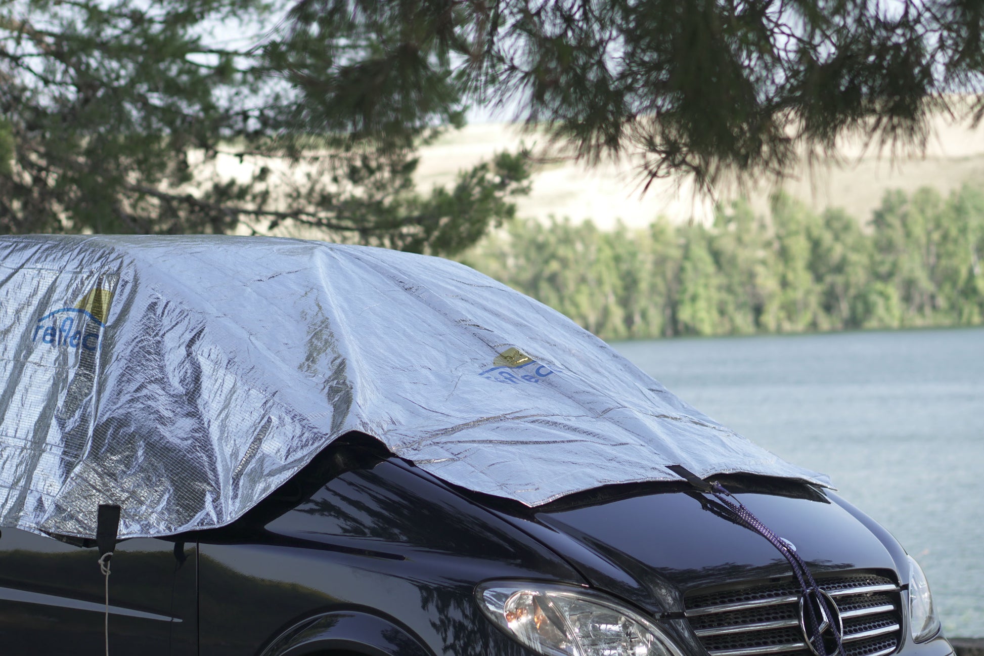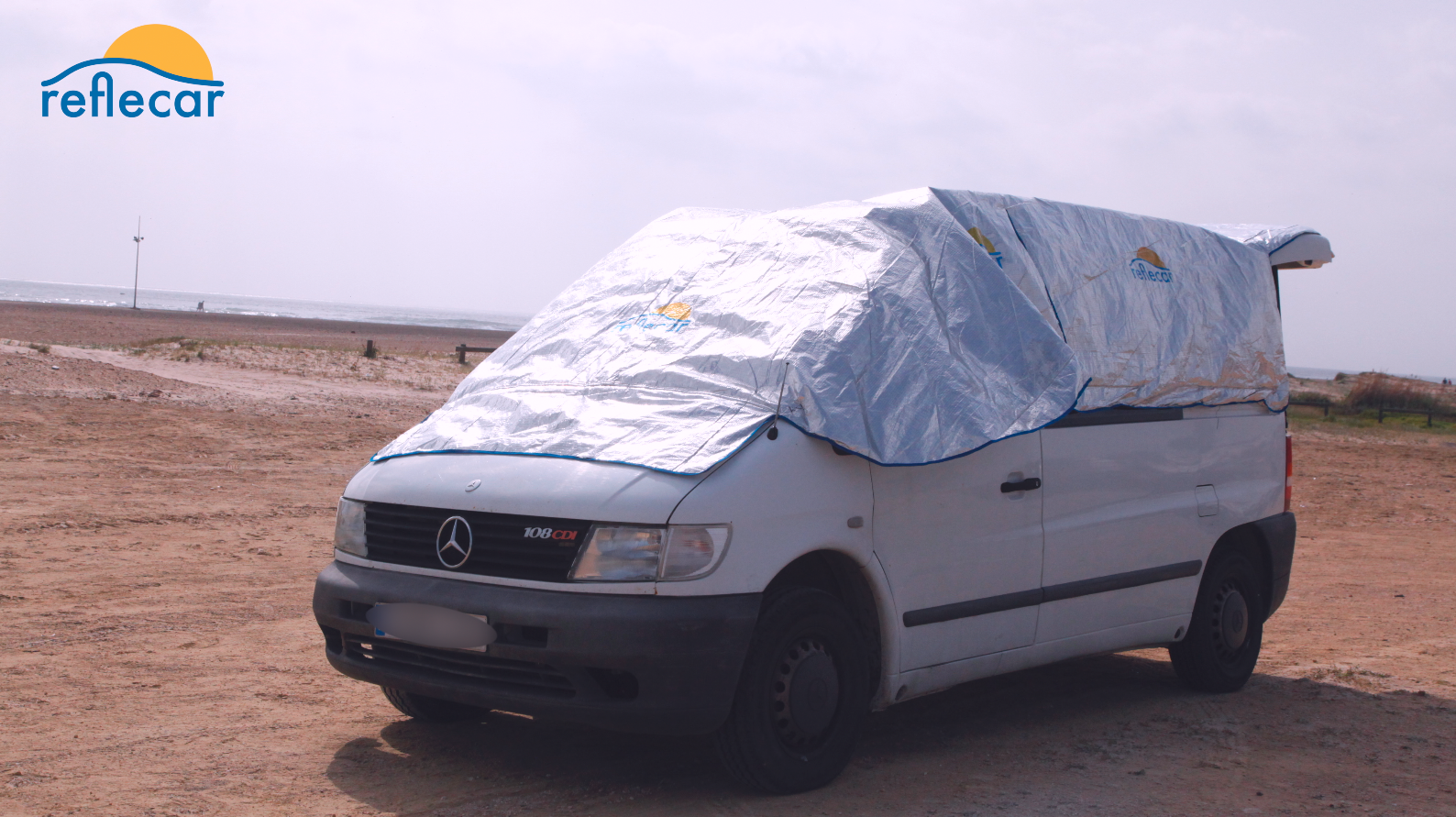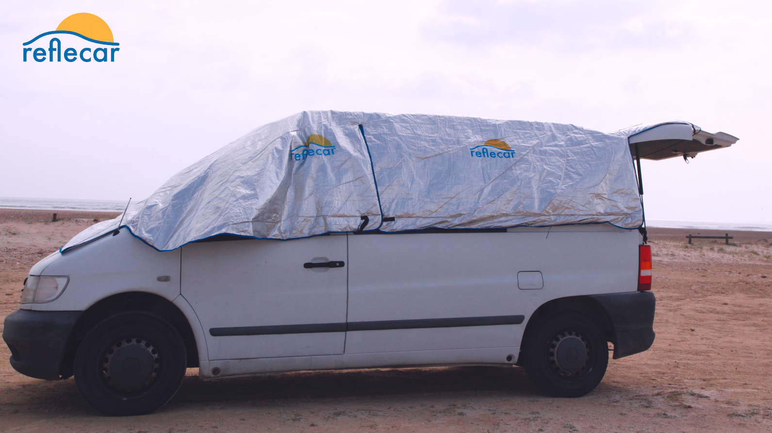 Reflecar modelo FURGO es una manta aislante fácil de colocar y quitar con la que podrás estar en tu furgoneta aparcada al sol y que haga dentro la misma temperatura que si estuviera aparcada a la sombra o como máximo 2 grados más de la temperatura ambiente. El secreto principal está en que reflecta gran parte de la luz antes de que llegue a la chapa y los vidrios, y sus capas aislantes hacen que no se transmita a su cara interna el calor.